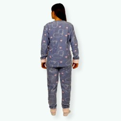 Pijama cómodo bordado , con el pantalón estampado . Tejido polar extra suave y calentito, ideal para el invierno, para estar por casa cómoda y relajada para ir a dormir, con un diseño y un estilo divertido, atractivo y confortable.