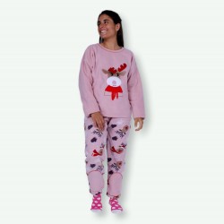 Pyjama brodé confortable, avec pantalon à motifs et chaussettes en coton. Tissu extra doux et chaud, idéal pour l’hiver, pour être à la maison confortable et détendu pour aller dormir, avec un design et un style amusants, attrayants et confortables.