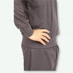 Pyjama confortable avec une chemise gris fin et un pantalon avec un motif profilé perlé. Idéal pour être à la maison, élégant et détendu pour être à la maison.